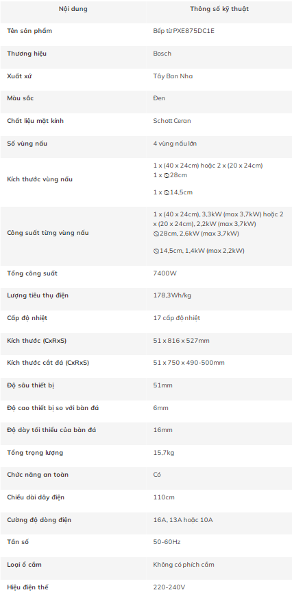 Bếp từ Bosch PXE875DC1E nhập khẩu Châu Âu